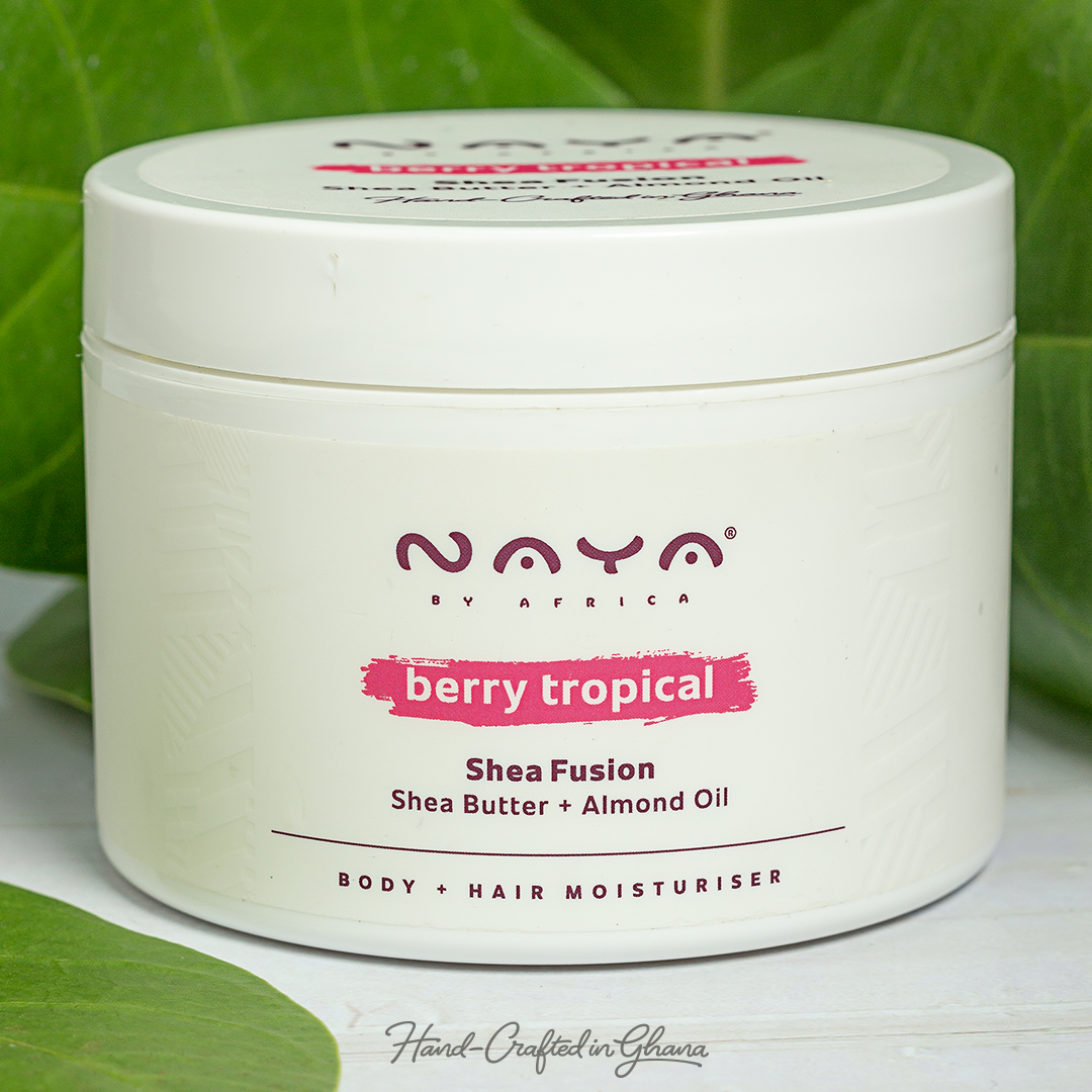 Nourishing Berry Tropical Shea Butter Fusion. Rich in Healing Shea Butter infused with Almond and Coconut Oils. Moisturizes the skin and repairs the hair from breakage and split ends.